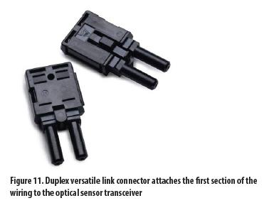 Avago科技已经研发了一种优化的用于连接光收发器与光纤线的第一部分相连的双工连接器。如图11所示。