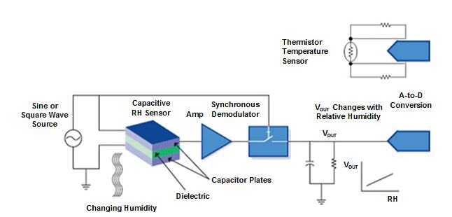 图1. 典型的分立器件组成的相对湿度和温度传感器