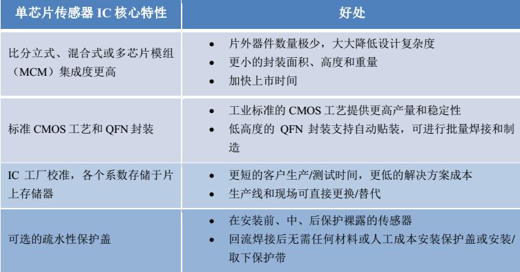 表1. 单芯片传感器相对于传统分立式设计的好处