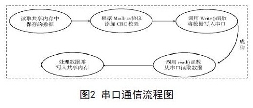 去除报文头的Modbus数据的读取来自于共享内存.半双工机制是串口采用的机制,不能同时进行接收数据与发送命令,串口数据的读取是在发送完命令之后.自动方向切换芯片被采用之后就可以解决这一问题了.串口通信流程图如图2所示.