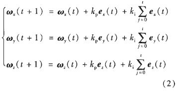 式(2)中ωx(t)、ωy(t)、ωz(t)为角速度,kpex(t)为比例项修正,