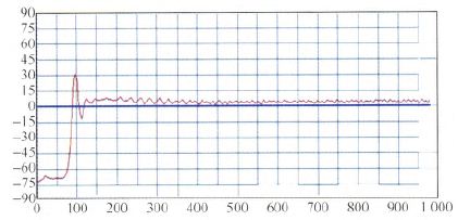 由图7可知,横滚角波形经过一大波一小波震荡后近似归为期望值零点,且超调量较小,系统很快进入稳定状态。