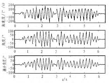 把陀螺仪测得的角速度数据和加速度计测得的角度数据通过(10)式进行融合后的波形如图6 所示,从图6 中可以看出, 经互补滤波算法融合后得到角度消除了陀螺仪的漂移和加速度计的高频扰动,可得以下结论: