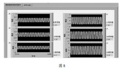 本设计的上位机数据测试软件在LabVIEW环境下开发,针对串口发送的数据和保存在SD卡中的实时数据进行不同的开发,其数据结果如图8所示。数据测试软件将串口发送的数据转换至[-5V,5V]之间进行显示。图中,通过标定换算,数据采集的结果是准确有效的。