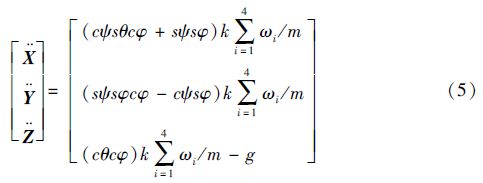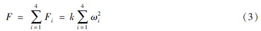 其中: i = 1,2,3,4 分别代表4 个电机, k 为推力系数。则四轴飞行器的总推力为: