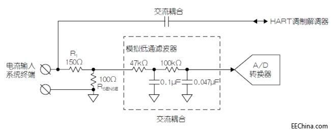 图3:集成无源滤波器且支持HART的输入。