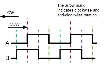 就增量编码器而言,仅能确定电机的相对位置(即仅能确定相对于上一个位置的转动方向和角度)。增量编码器给出A和B两个信号,它们在不转动的情况下都具有默认值,假设为逻辑0和逻辑1。在轴上出现较小角度的旋转时,信号A和B都会在短时期内转换为其它逻辑,随后又返回默认值。根据旋转方向,A会转到B或B会转到A。对于每次这种旋转来说,信号A和B都会发生这种转变。图4同时给出了顺时针和逆时针旋转情况下信号A和B的转变情况。