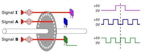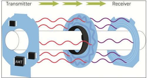 最著名的三种编码器方法分别基于光学技术、磁技术或电容技术。简单来说,光学技术采用带槽圆盘,一侧是LED,而光电晶体管在相对的一侧。当圆盘转动时,光程被阻断,得到的脉冲指示轴的转动和方向。虽然光学方法成本低且效率高,但是以下两个因素使得光学编码器的可靠性下降:污垢、灰尘和油脂等污染物会干扰光程,及LED的使用寿命有限,通常几年之内其亮度损失过半,最终被烧坏。