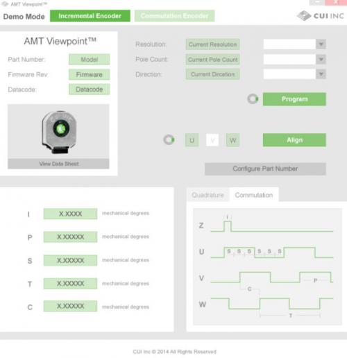 在演示模式,用户能够使用GUI,以及进行编码器相关运作,就像连接实际的编码器一样,这是在购买或实际使用之前熟悉编码器和工具的便利方法。最终,GUI还支持创建可定购的部件编号,用于特定的编码器型款,这包括输出格式、套(孔)适配器,以及安装基座等选项。