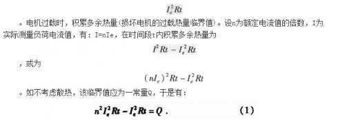 在工业企业生产中会用到大容量的电机,由于这些电机的长时间连续工作,并且长期受企业生产环境中粉尘、电流变化等影响,电机很容易发热。如果电机不超过限定发热量,则可以安全运行,如果发热量超过限定值,且长时间持续运转,电机温度就会逐渐升高,导致电机性能降低,甚至会烧坏电机,因此对电机进行热保护就显得非常重要。电机发热的原因通常是电流超过额定值引起的,启动时的瞬间电流过高是允许的,但持续的过流必须在限定时间内降下来,否则就需要启动断电电路来保护电机。也就是说电机热保护的实质是:判定电机的过流性质。