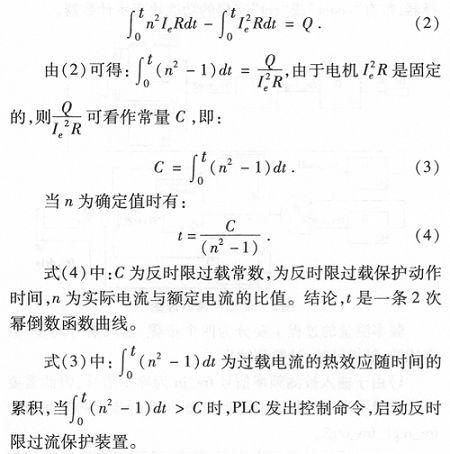 反时限过流保护可以理解为保护动作时间随电机电流变化而变化。其关键点有两个:一是电机电流超过额定电流规定时间保护将被启动;二是电机电流越大保护动作时间越短。各国专家都在研究这种保护方式,最早采用常规双金属片热继电器,上世纪七、八十年代采用模拟电路设计的反时限过流保护电路,九十年代后采用功能强大的智能化仪器,现代企业是以PLC为核心的电机保护系统。常规双金属片热继电器的缺点是不可靠、不稳定,模拟电路设计的反时限过流保护电路是利用电容恒流充电设计的过流保护器,缺点是电路设计繁杂、通用性较差、电子器件多,以单片机为核心的电机保护器采样精度有了质的飞跃,PLC为核心的电机保护系统采样精度更进一步。
