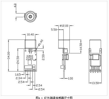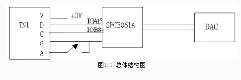 TN红外测温传感器接入部分:通过SPCE061A IO口的控制,将将所测得的温度接受到SPCE061A中来处理。