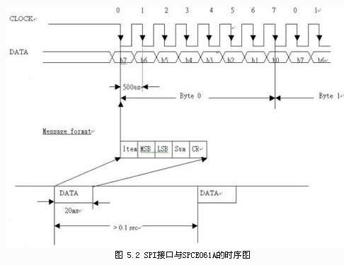 其中,SPCE061A读取红外传感器的测量结果,是采用SPI接口进行读取,其中数据格式如下:
