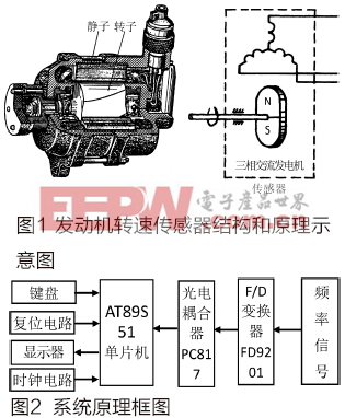 频数变换器FD9201把三相交流发电机测量转速后输出的感应电动势的频率信号转换为数字量信号后,通过光电耦合器PC817隔离后送给单片机AT89S51,由单片机进行转速的计算。
