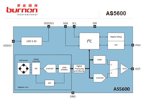 ams公司(奥地利微电子)推出使用磁感应方式工作的电位器IC—AS5600,拥有12-bit输出精度,可以满足上述所有需求。