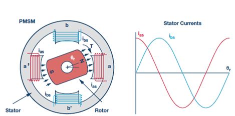 在永磁交流伺服电机中,为了高效率、高动态地产生扭矩,要求正弦定子电流与转子磁体角位置对齐,如图2所示。 电流和磁场对齐控制确保电机扭矩满足速度环路的动态要求。 PWM和逆变器反馈隔离模块包括在电路控制功能中。 三相功率逆变器将所需的电压施加于电机绕组以驱动目标绕组电流。 电流反馈功能将绕组电流测量与高压逆变器隔离,并向磁场对齐模块提供反馈信号。 电流反馈的精度决定扭矩产生的质量,因为反馈中的增益、失调或非线性误差会产生纹波扭矩,进而表现为对速度控制器的负载干扰。 在某些精密伺服驱动中,有一个附加环路也会补偿定子绕组线槽与转子磁铁相互作用所引起的伺服电机内部扭矩纹波。 所有这些都能改善电机的低速性能,最终增强成品的精度和表面质量。