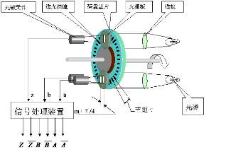 它主要由光源、码盘、光学系统及电路4部分组成。那下面我们根据不同种类的光电编码器进行说明。