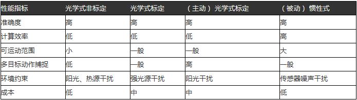 最后,我们可以通过下面的表格对这几种动作捕捉系统进行简单的对比: