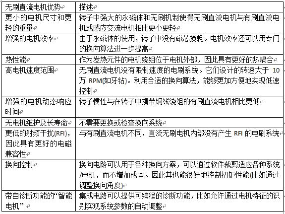 表1,无刷直流电机优势小结