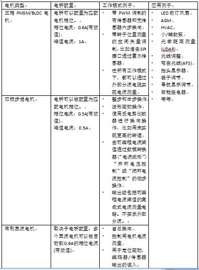 表2,采用最新高压控制器的电机类型和工作模式一览