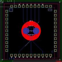 图2:两个不同的生物传感器芯片版图; 图a:传感器(红色和蓝色)和热结构(青色); 图b,无热结构传感器
