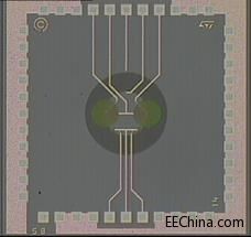 很多化学反应需要考虑温度,因为大多数化学反应规则需要特定温度或温度循环。为开发一个适合多种应用的生物传感器,需要在传感器芯片版图上整合热致动结构(在一个区域内确定统一的温度或恒定的梯度)和热控制结构(精确控制温度)。根据参考文献[23]介绍的制造工艺,我们采用硅技术制造生物传感器。更详细地讲,第一个金属层用于制造加热器和热阻,两个热结构都经过测试。用一个6V直流信号驱动加热器,温度可达100°C以上;温度传感器可精确测量加热器温度。第二个金属层用于制造初级线圈;第三个金属层用于制造两个感测系统(次级大线圈和次级小线圈)。图2所示是两个不同的传感器芯片版图,一个有热结构,另一个没有热结构。根据参考文献[23]描述的程序,我们对温度感测和热致动进行了实验表征。本文讨论无热结构生物传感器的表征。
