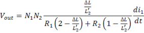 其中,N1和N2 表示初级线圈和次级线圈的匝数;R1和R2分别是初级线圈和次级线圈的电阻;i1 是初级线圈的电流;L’2 是次级工作线圈的电感,而ΔL 是磁性物质出现导致工作线圈的电感变化。