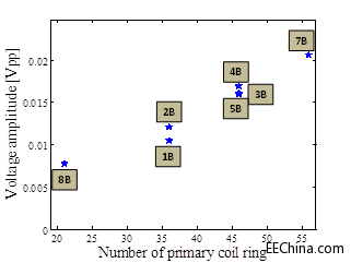 图7: 次级小线圈输出电压与初级线圈匝数保持函数关系