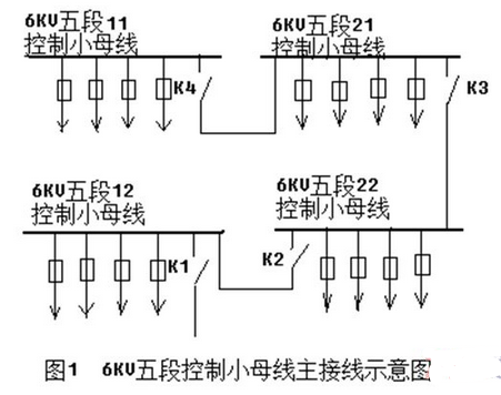 2009年7月20日,电厂开6号机,运行人员发现中央控制信号屏“直流系统故障”光字牌亮,直流监控屏上“直接接地”灯亮,切换“+”对地电压为220V、“-”对地电压为0V,很显然是负电源直接接地,运行人员通过临时断路法确定接地点在6KV五段开关的控制电源上,而6KV五段的控制小母