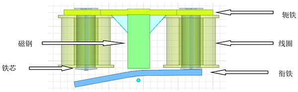 依据产品应用于机载条件,电磁系统采用了“平衡旋转式”结构,见图4,磁路原理见图5。
