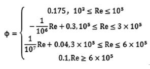 其中Φ为阻力系数,是雷诺数的函数,即f=f(Re)。英国物理学家李莱用实验方法确定了Φ-Re关系曲线[3]如图2所示。曲线的纵坐标与横坐标均用对数表示。可以看出,Φ随Re的增大而连续平滑地减小。已知Re可以估算出阻力系数。