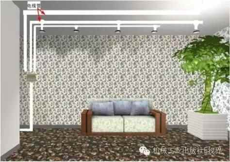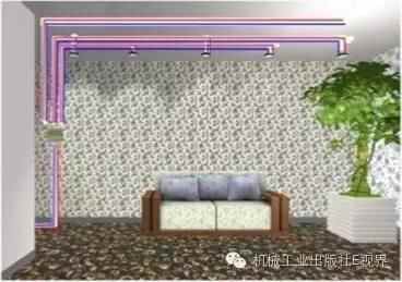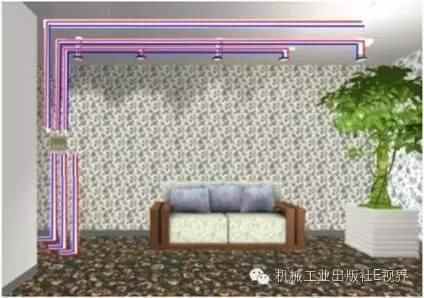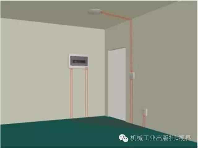 图2与图3所示为开关线路基本功能一样安装现场一样的不同施工方案。图2所示施工方案存在操作不规范的现象。图3所示施工方案属于正确的施工方案。图2所示施工方案的具体布线布管图示如图4所示,暗敷后的装修效果如图5所示。
