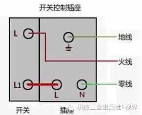 2.开关控制插座一开关五孔插座采用开关控制插座(即两用型的一开关五孔插座面板)时的开关与插座的连线图如图17所示。