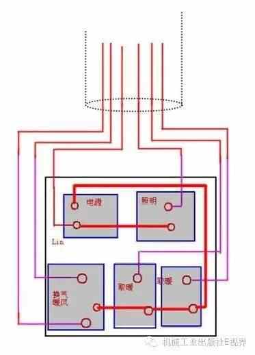 五、浴霸开关与其连线浴霸开关的连线与布管如图21所示。