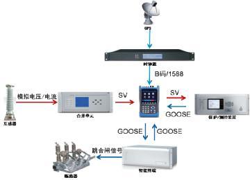 智能站的通讯线路主要通过光纤实现,通讯方式是以总线形式运行通讯协议,因此在智能站的建设和维护中就无法用常规的电万用表等设备进行检测,必须有专用于智能站的检测维护仪器。这就需要智能变电站光数字测试仪,俗称“光万用表”。致远电子针对智能电网量身打造了DT6000系列智能变电站光数字测试仪,DT6000的应用如下图所示。