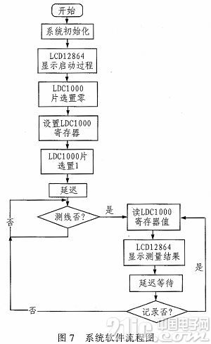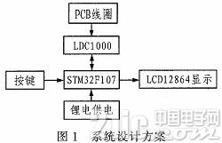 LDC1000并不像Q表那样测试线圈的电感量,而是可以测试外部金属物体及其空间位置;采用四线SPI连接方式。第三部分:LCD12864显示单元。仪器初始化显示和检测结果显示。系统方案框图如图1所示。