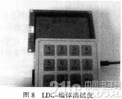 将测量系统进行封装,沿建筑墙体进行实验操作。LCD液晶屏幕可以显示墙体电线布置方向,如水平或竖直方向,整个操作过程均是通过按键来完成。图8为LDC-墙体测试仪封装前图片,主要给出了显示和按键。按键采用4×4阵列按键,主要完成测试仪启动和测量记录功能。