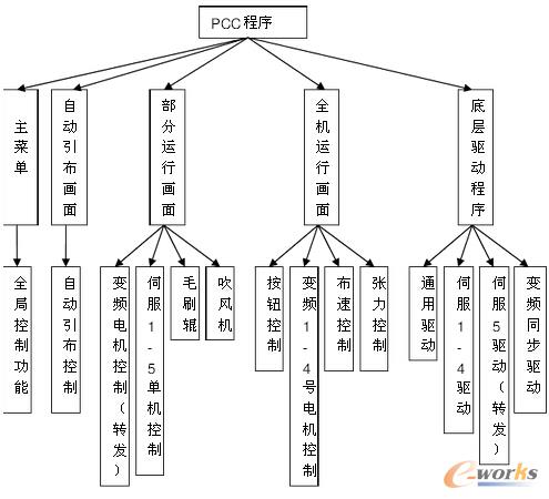 上导伺服5和4个变频器的控制程序放在PCC中编写。PCC的软件框架图如图4.2所示。