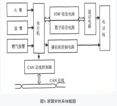本系统以AT89S52单片机为核心,不用对电话网进行任何改造,实现对家居设防点进行自动检测和语音报警。设计中用CAN总线结构组成安防系统,有较好的灵活性和扩展性,同时利用CAN 总线引入实时的数据处理,提高了系统的可靠性。可对楼宇可视对讲、智能小区管理、门禁管理等有较大的应用推广价值。