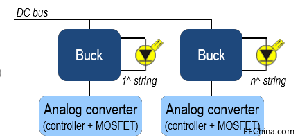 图4 – 基于转换器的模拟式LED多灯带管理方法