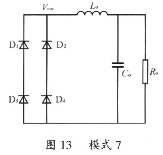 Cc被放电到零,整流二极管D1~D4全部导通,负载电流通过整流二极管续流,简化电路如图13所示。在续流期间可以关段S2,此时S2为零电流关断。