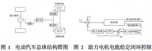 原型电动汽车运动控制主要需要解决以下两个问题:一是助力转向系统控制问题;二是对两个独立驱动轮的协调控制问题。