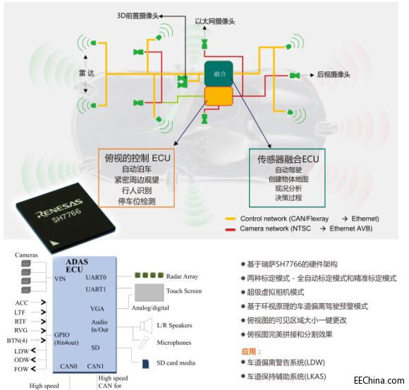基于SH7766,世强联合第三方设计公司开发出了一套高级汽车环视辅助驾驶系统方案(如图3所示),堪称分销界首创!这套环视ADAS系统方案具有强大的图像处理能力,能实现超清晰图像和高品质色彩还原;完美的画面明暗表现,来自高动态范围的自动调整;且只有极低的CPU占有率和功耗。此方案可以适用于汽车安全系统,如车道偏离警告系统(LDW)、车道保持辅助系统(LKAS)等典型的ADAS应用。