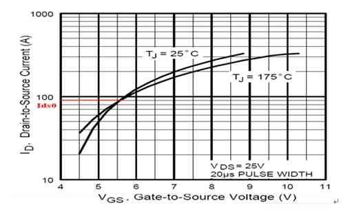 图3为MOSFET处于饱和区时漏极电流ID与栅极电压VGS的关系曲线即转移特性,用公式可表示为: