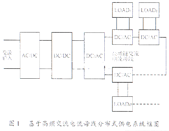 这种基于高频链交流电流母线分布式电源系统的框图如图1所示。和直流分布式电源系统一样,它相对于集中式的电源系统而言,主要有以下几个优点: