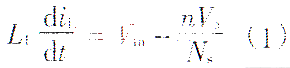 2)[t1,t2]阶段 S3及S4关闭,S1,S2,S5导通。电感L1充电。等效电路如图5(b)所示。由图5(b)不难得关系式(1),即