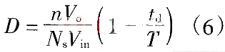 令电感L1的平均电流为IL,假设逆变器死区时间td<<T,则次级变压器的输出电流为,在理想无损耗的情况下,可得功率关系式(7),即