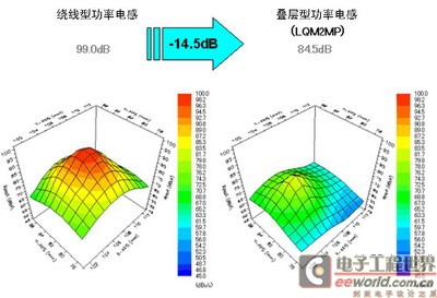 另外,在移动设备多功能化进程中,对机器的小型、薄型化要求也逐步提升。为此就必须减少元件的使用数量,或者将元件做到更小。此对策是借由提高DC-DC转换器的开关频率,减小必要的功率电感和电容的额定参数值,以此来适应元件的小型化。将集中控制电源的PMIC(Power Management IC)的开关频率,将从一直使用的1MHz变为3MHz,还有管理单独电源的DC-DC转换器IC中主流频率一直是3~4MHz,对于此种情况,作为主要元件的功率电感就需要1.0uH到2.2uH的低感值产品。而开关频率数的提高使静噪成为必须,为了解决这些课题,推动了功率电感的开发。