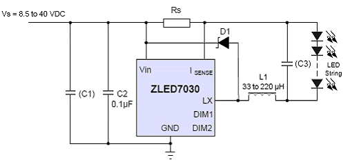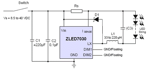 图2.输出电流由RS决定的 ZLED7330基本应用电路