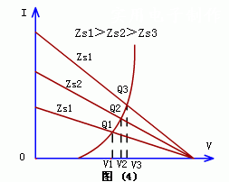 压敏电阻的Zv与电路总阻抗(包括浪涌源阻抗Zs)构成分压器,因此压敏电阻的限制电压为V=VsZv/(Zs+Zv)。Zv的阻值可以从正常时的兆欧级降到几欧,甚至小于1Ω。由此可见Zv在瞬间流过很大的电流,过电压大部分降落在Zs上,而用电器的输入电压比较稳定,因而能起到的保护作用。图(3)所示特性曲线可以说明其保护原理。直线段是总阻抗Zs,曲线是压敏电阻的特性曲线,两者相交于点Q,即保护工作点,对应的限制电压为V,它是使用了压敏电阻后加在用电器上的工作电压。Vs为浪涌电压,它已超过了用电器的耐压值VL,加上压敏电阻后,用电器的工作电压V小于耐压值VL,从而有效地保护了用电器。不同的线路阻抗具有不同的保护特性,从保护效果来看,Zs越大,其保护效果就越好,若Zs=0,即电路阻抗为零,压敏电阻就不起保护作用了。图(4)所描述的曲线可以说明Zs与保护特性之间的关系。